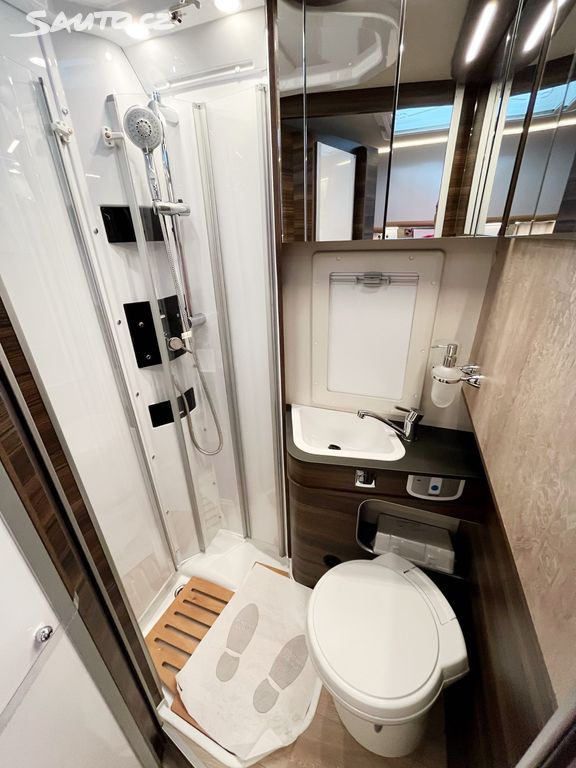 - plynové + el. topení Truma Combi 6E s rozvodem tepla po celém interiéru včetně zadní garáže a kabiny řidiče