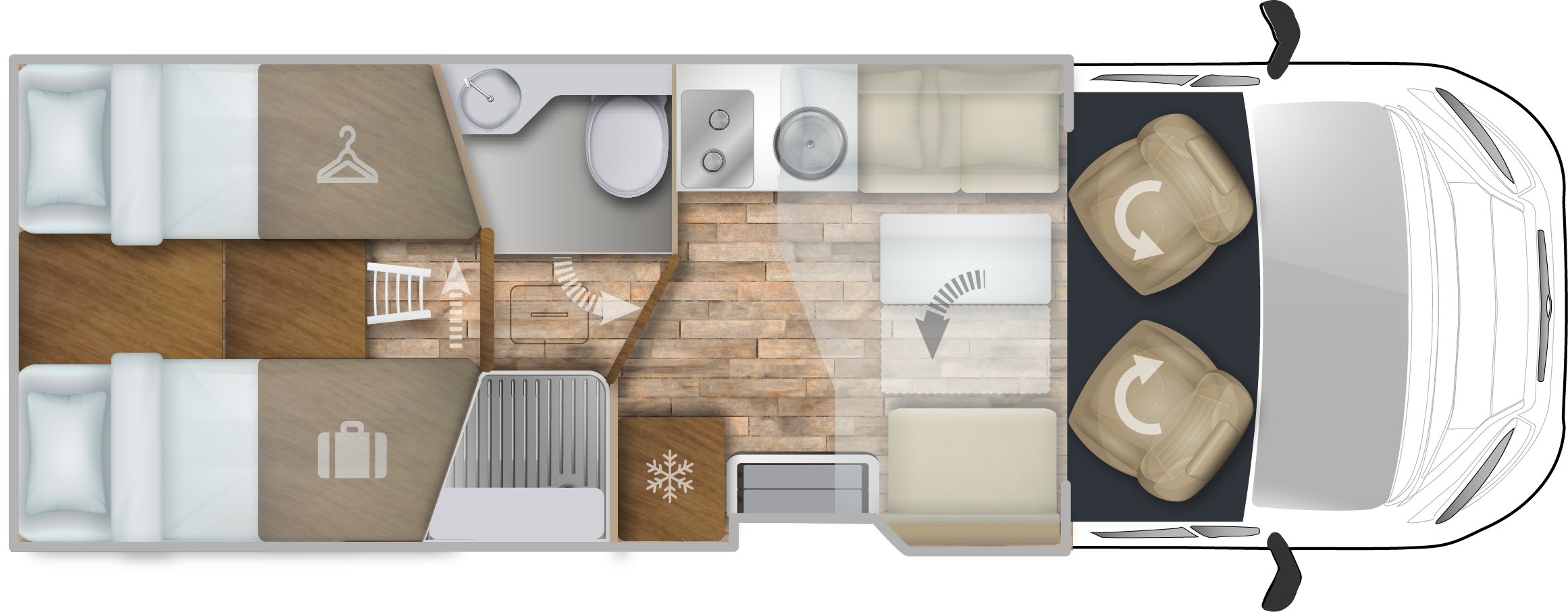 - otáčecí přední sedadla