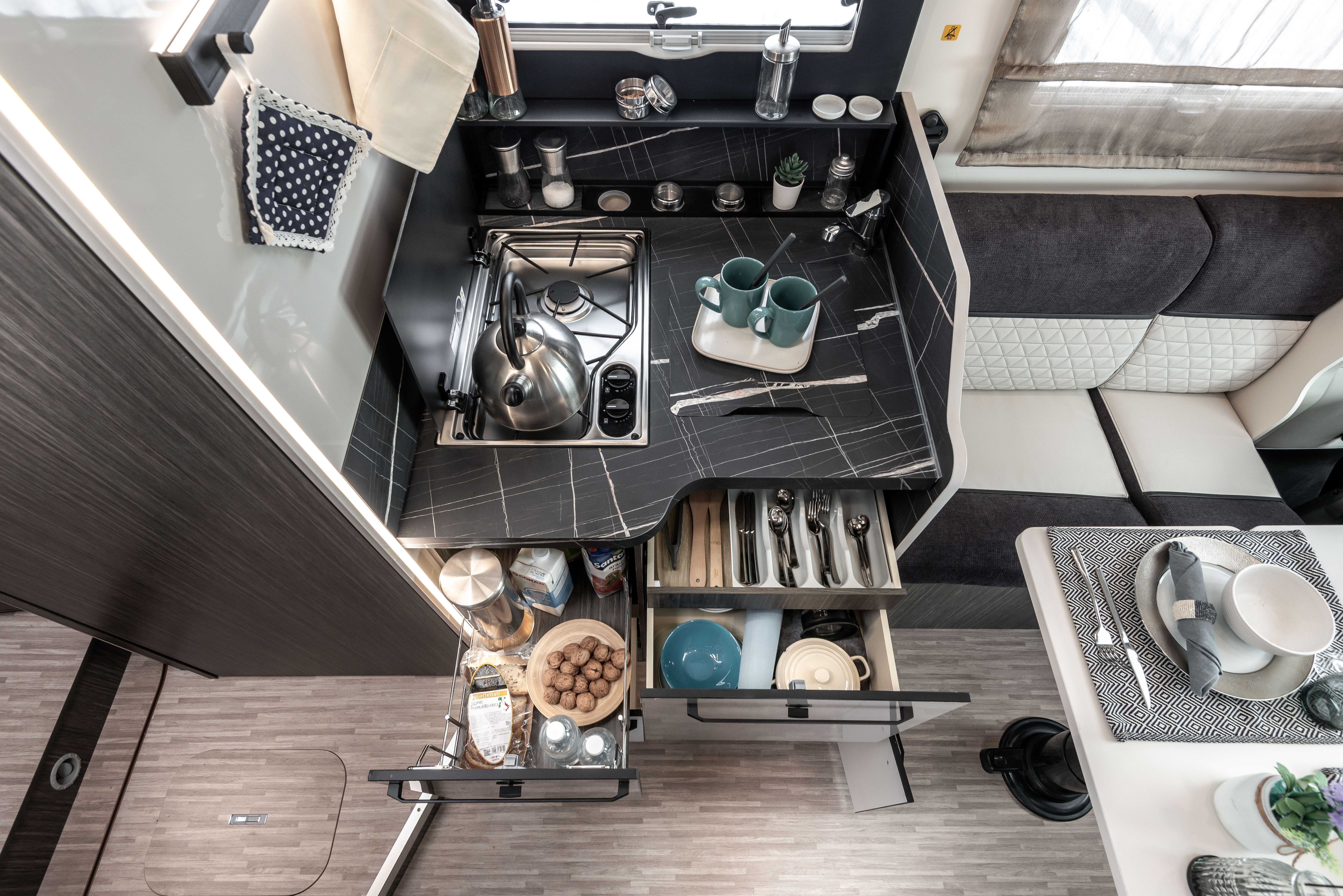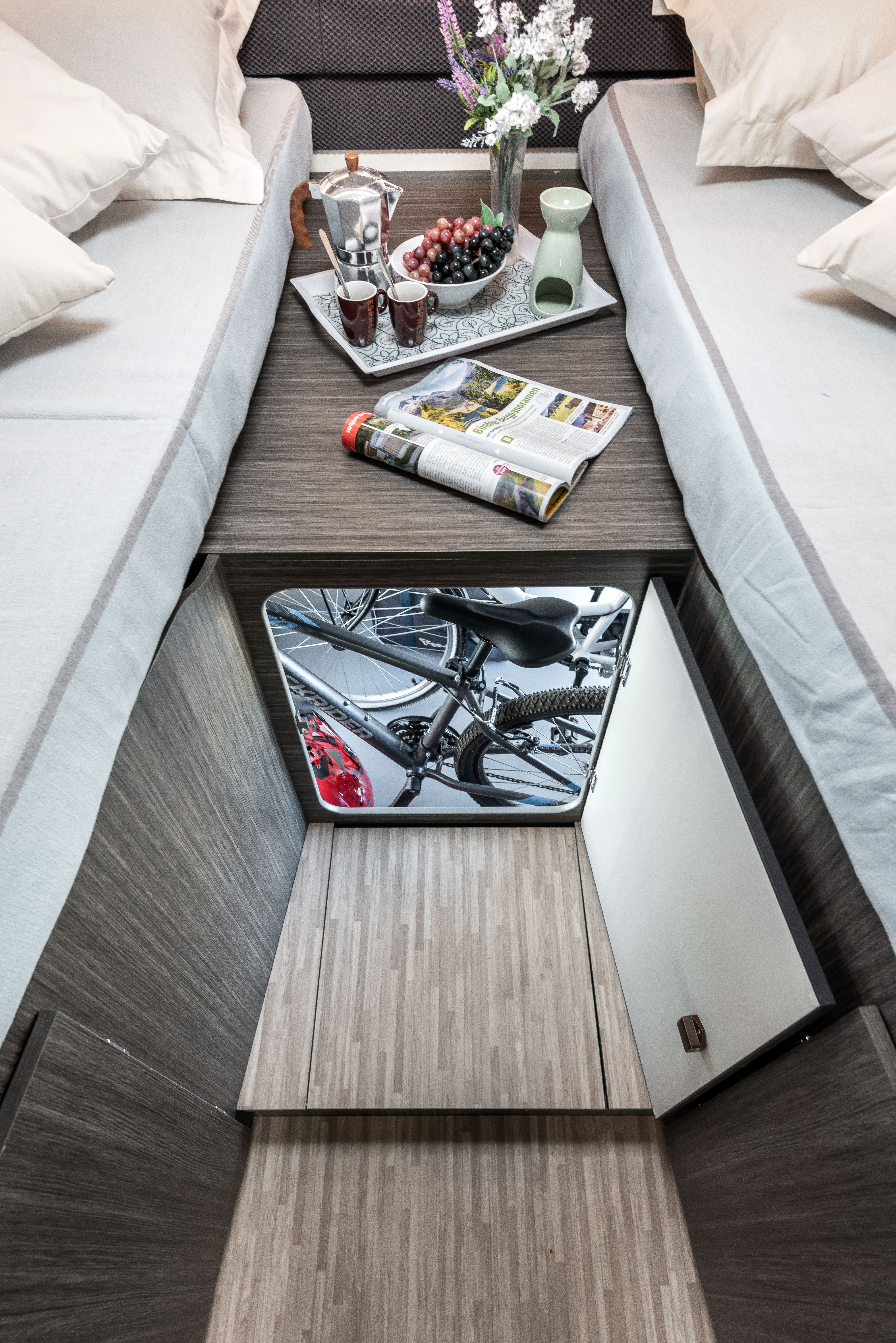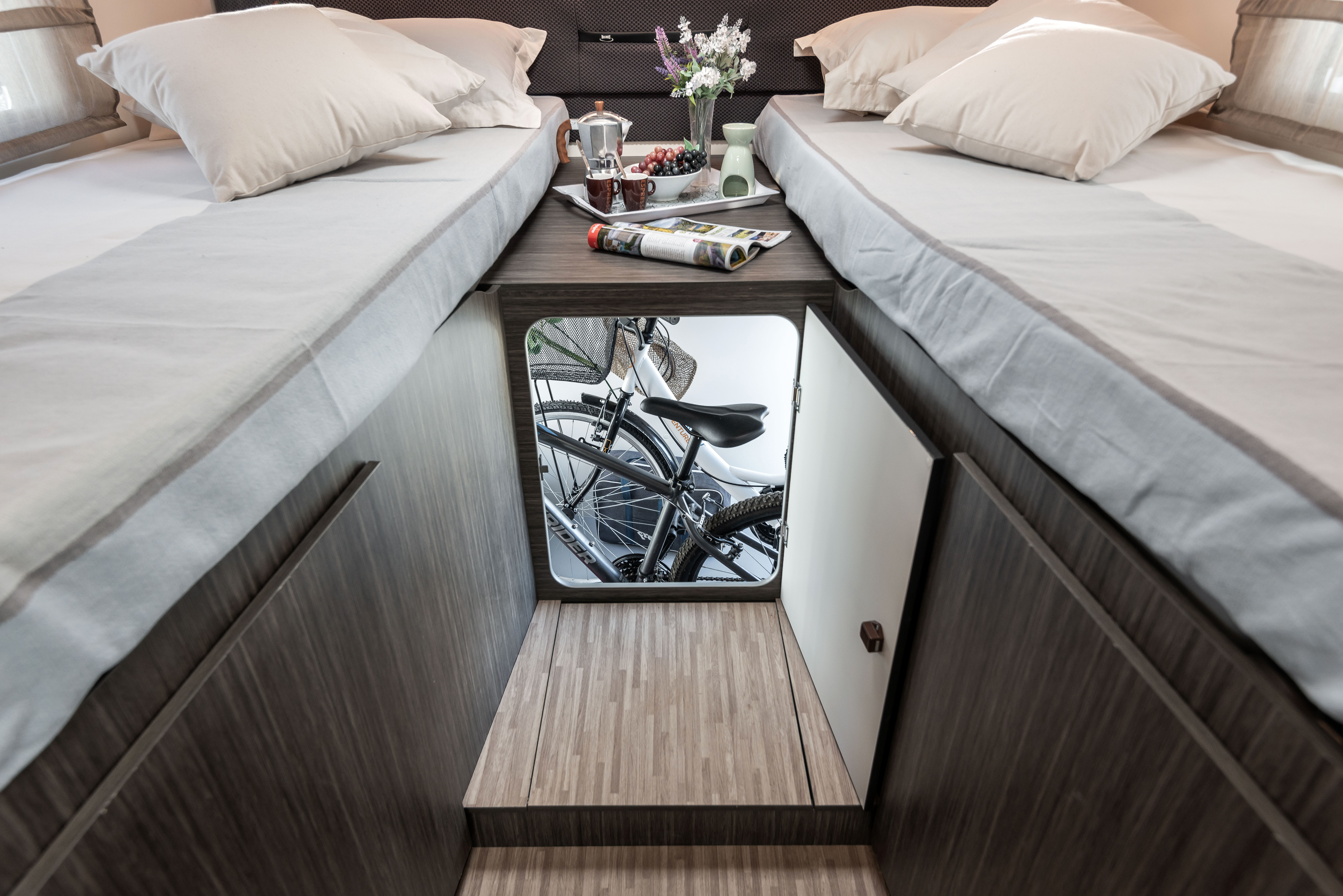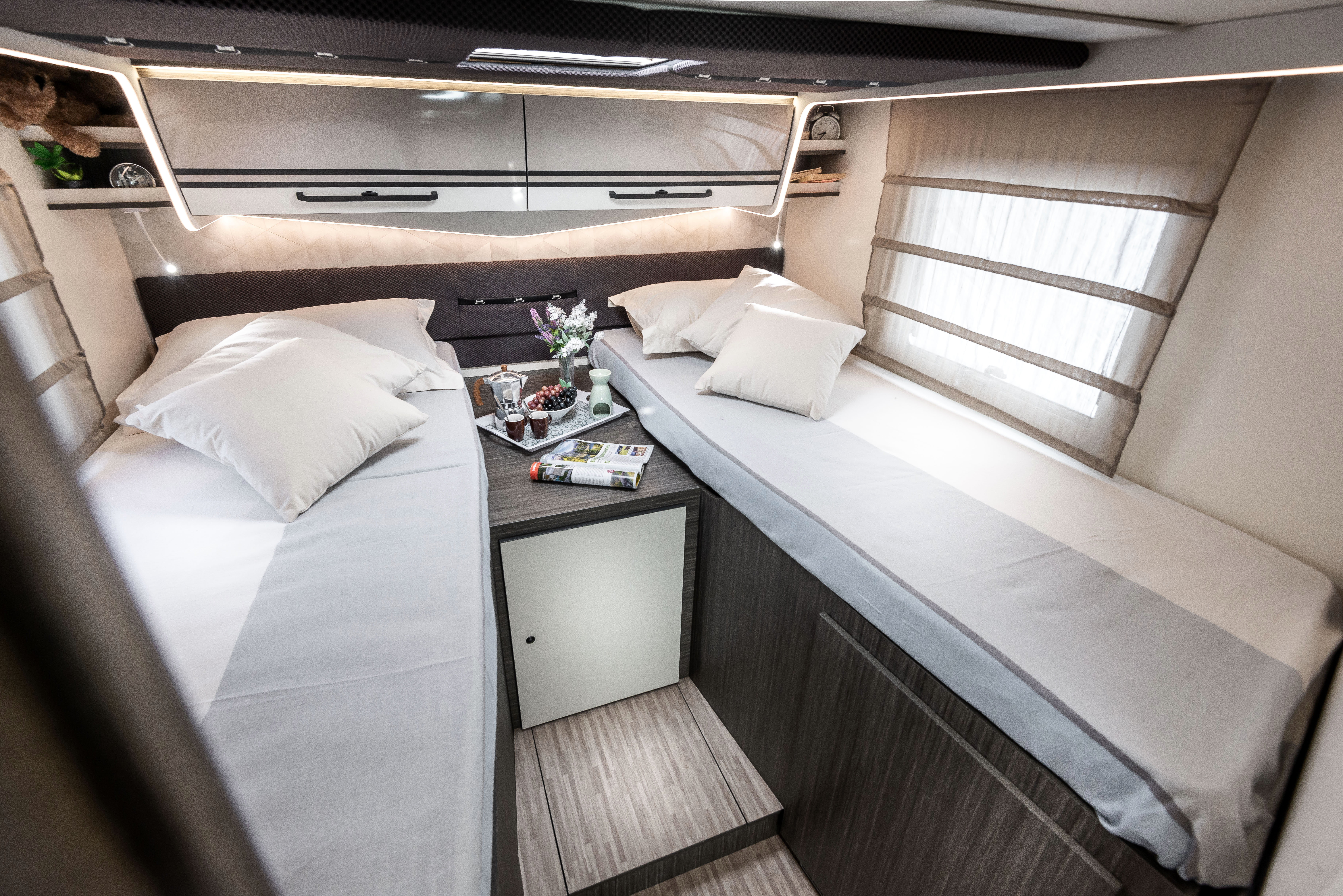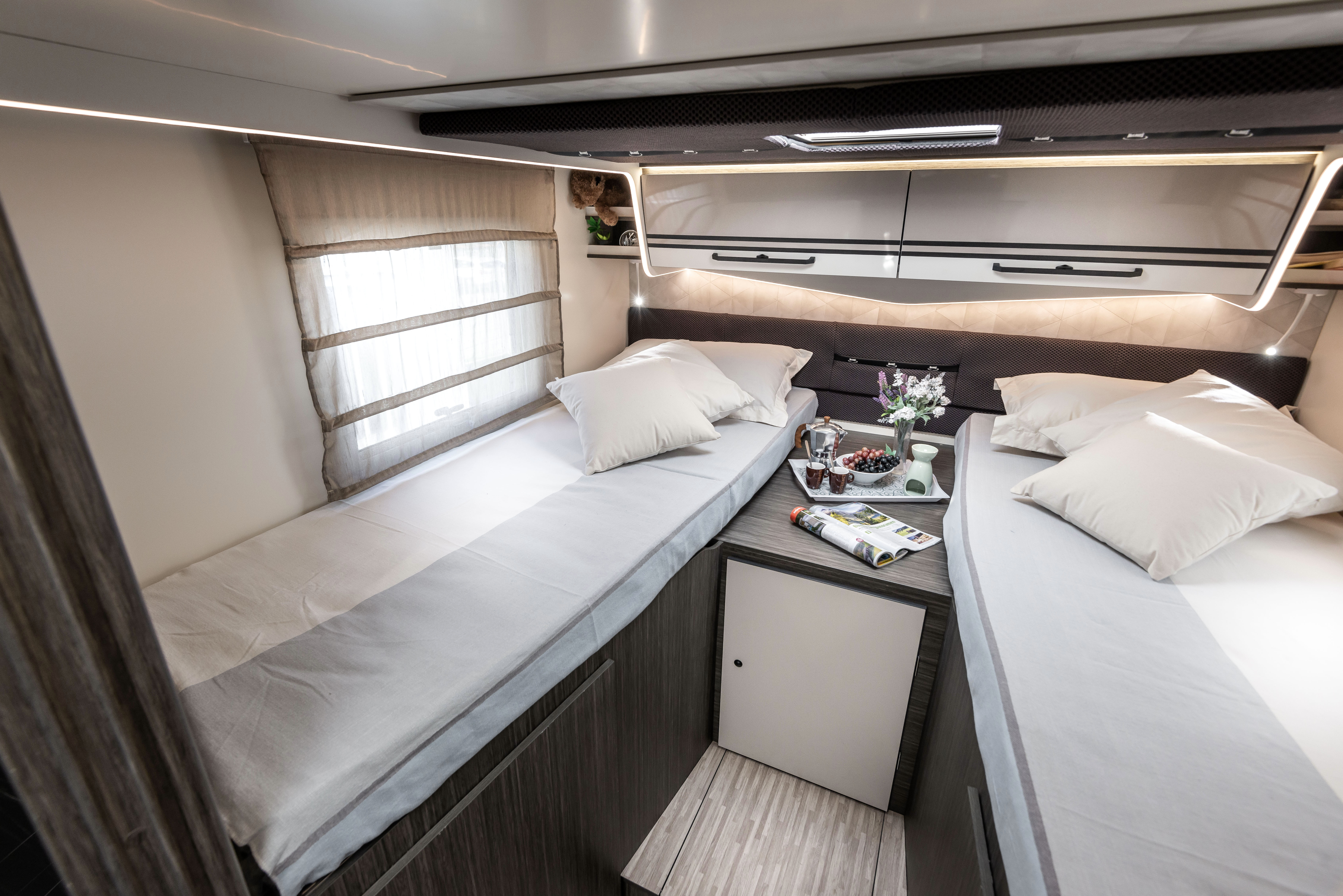 - USB zásuvky v obývací části a ložnici